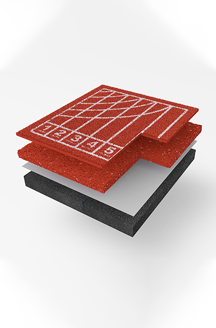 透氣型塑膠跑道是由底涂、彈性顆粒中層、面層組成的運(yùn)動(dòng)場(chǎng)地。底涂為單組分聚氨酯膠黏劑,與空氣中的濕氣反應(yīng)固化;彈性顆粒中層由 PSV-211 單組分專(zhuān)用膠黏劑與 EPDM 顆粒按照 1:6~1:7 的質(zhì)量比混合后攤鋪而成;噴顆粒面層由 PSV-302 噴顆粒面膠、膠粉、EPDM 顆粒按比例混合,攪拌均勻后,噴涂于彈性顆粒中層上固化而成。