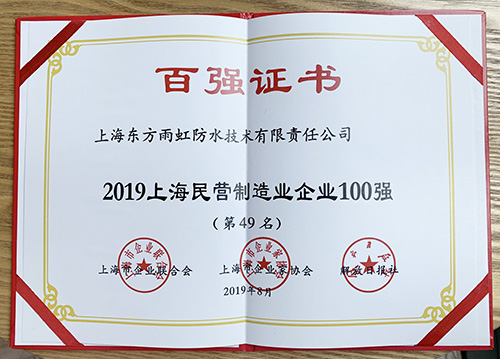 8月19日,由上海市企業(yè)聯(lián)合會、上海市企業(yè)家協(xié)會、上海市經濟團體聯(lián)合會和解放日報社聯(lián)合主辦的“2019上海百強企業(yè)發(fā)布會”在上海召開。上海東方雨虹憑借出色的業(yè)績表現和優(yōu)質的產品服務口碑,位列“2019上海民營制造業(yè)企業(yè)100強”榜單第49名,“2019上海制造業(yè)企業(yè)100強”榜單第70名。