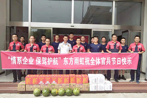 8月1日上午,東方雨虹唐山生產(chǎn)基地組織管理人員前往唐山市消防支隊(duì)、開(kāi)發(fā)區(qū)管委會(huì)派出所,看望慰問(wèn)全體消防官兵,送去建軍92周年的節(jié)日問(wèn)候。