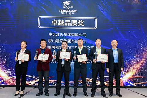 寶龍地產自2017年正式與東方雨虹達成戰略合作,近三年來,雙方合作的項目超過70個,東方雨虹卓越的產品品質、過硬的技術、標準化的施工服務收獲了寶龍地產的高度認可,本次榮獲2019年度“卓越品質獎”“戰略合作獎”兩大殊榮是繼2017年榮獲寶龍地產“優秀戰略合作伙伴”后的又一重要榮譽。