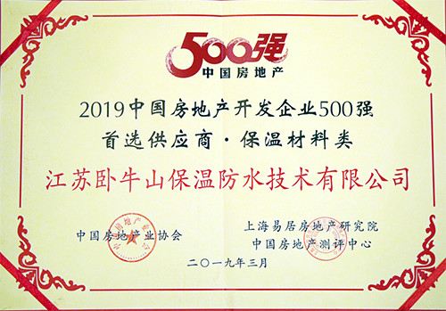臥牛山公司始終以“讓建筑更節(jié)能,讓居住更舒適”為企業(yè)使命,以“客戶至上,全心全意為客戶服務”為宗旨,在建筑節(jié)能行業(yè)實現(xiàn)了快速發(fā)展。截至2019年,臥牛山公司已連續(xù)五年榮獲中國房地產(chǎn)開發(fā)企業(yè)500強首選供應商。這是房地產(chǎn)500強企業(yè)對臥牛山實力的贊賞,也體現(xiàn)了眾多合作伙伴對臥牛山施工服務及“建筑節(jié)能系統(tǒng)解決”理念的認可。