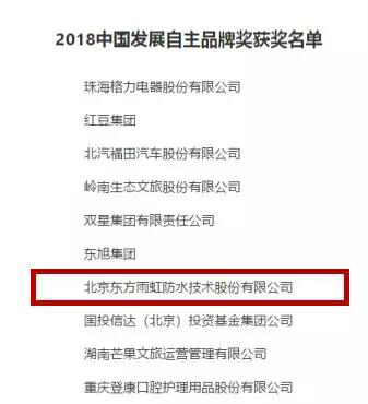 據悉,該活動以“發展、創新、影響、責任、推動力”為評選標準,旨在宣傳和弘揚我國經濟社會發展各領域涌現的先進典型。經過多個評審環節,并將最終評選名單上報國家發展改革委,確定評審結果。本次獲獎是對東方雨虹自主品牌發展成果的肯定,也是對公司品牌實力的認可。   東方雨虹的品牌價值源于對“守正道,成匠道”的執著堅守,源于各方對其優質系統服務的認可,源于合作伙伴的長期支持和信賴,源于每一個東方雨虹人的真誠付出。未來,東方雨虹也將繼續以品質和品牌向用戶負責,全力踐行“為人類為社會創造持久安全的環境”的企業使命。