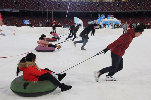 據悉,此次活動圍繞著“感恩、回饋、歡樂、激情”的總基調,除了讓大家體驗現場的諸多冰雪項目外,還設計了雪圈賽跑、親子呼啦圈比賽、抽獎活動等精彩環節。