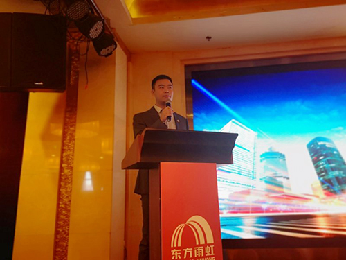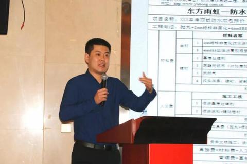隨后,東方雨虹工程建材集團副總工程師林宏偉介紹了公司強大的技術支持團隊。東方雨虹對合伙人提供的技術支持包括:培訓合伙人團隊、舉辦技術交流會、優化防水系統方案、設計滲漏維修方案和標準化施工技術指導等。林宏偉承諾:東方雨虹將竭誠為合伙人提供滿意的服務。