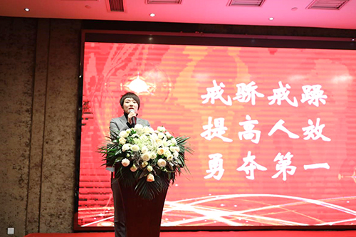 東方雨虹工程建材集團華南區(qū)總經(jīng)理黃姣女士充分肯定了四川公司在2018年取得的成績,圍繞著“戒驕戒躁、提高人效、永爭第一”的理念,她要求四川公司全面“學習、追趕、超越”。