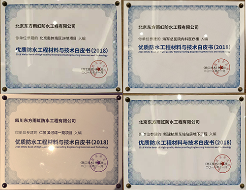 東方雨虹四項優質工程入選《優質防水工程材料與技術白皮書(2018版)》