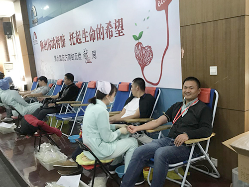 領取登記表、檢測、化驗、抽血,每個環節都有條不紊地進行著。為了緩解緊張情緒,一些獻血多年的老員工談笑風生,時不時跟新員工們分享經驗,他們仿佛感受不到針扎的疼痛,只體會到傳遞愛心的快樂。質樸的話語,無形中給愛加碼,這讓一些原本還有點害怕的員工也紛紛勇敢地挽起袖子。