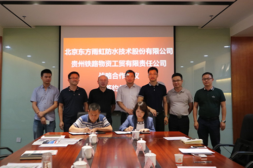 近日,東方雨虹與貴州鐵路物資工貿有限責任公司(以下簡稱“貴鐵物貿”)正式簽署戰略合作協議。貴鐵物貿公司董事長肖熙、東方雨虹高鐵事業部總經理彭小平等出席了簽約儀式。