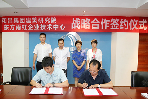 7月6日上午,和昌集團(tuán)建筑研究院與東方雨虹企業(yè)技術(shù)中心舉行戰(zhàn)略合作簽約儀式。和昌集團(tuán)工程采購(gòu)部總經(jīng)理於桂軍、和昌集團(tuán)建筑研究院院長(zhǎng)兼工程總監(jiān)嵇雷、東方雨虹集團(tuán)副總裁張志萍、集團(tuán)總工程師王新、工渠(中國(guó))副總經(jīng)理王媛麗、總工程師林宏偉出席簽約儀式。