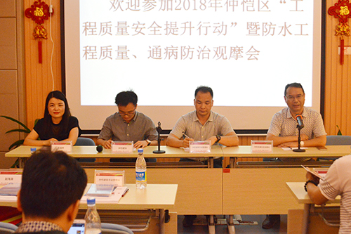 5月31日下午,由惠州市仲愷高新區住房和城鄉規劃建設局主辦,惠州仲愷高新區建筑行業協會協辦,廣東東方雨虹防水工程有限公司承辦的“工程質量安全提升行動”暨防水工程質量、通病防治觀摩會在東方雨虹惠州生產基地召開。仲愷區建設工程質量安全監督站站長劉水金、副站長吳偉浪、區住建局市場科鐘乾華,各園區、鎮(街道)、轄區在建項目質量負責人以及建筑行業協會等100余人參加觀摩會。廣東東方雨虹總經理孫福琴、總工程師周子鵠,惠州東方雨虹廠長趙海濤等出席了活動。會議由區建協副秘書長田家豪主持。