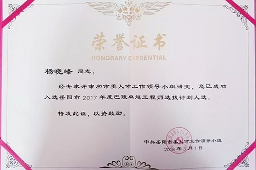 3月8日上午,巴陵人才工程推進(jìn)會在湖南岳陽召開。會議公布“2017年重點人才支持計劃、系列人才選拔計劃人選(團(tuán)隊)名單”,岳陽東方雨虹防水技術(shù)創(chuàng)新團(tuán)隊榮獲“科技創(chuàng)新人才團(tuán)隊”稱號,外加劑技術(shù)保障部經(jīng)理楊曉峰入選“岳陽市2017年巴陵卓越工程師選拔計劃”。