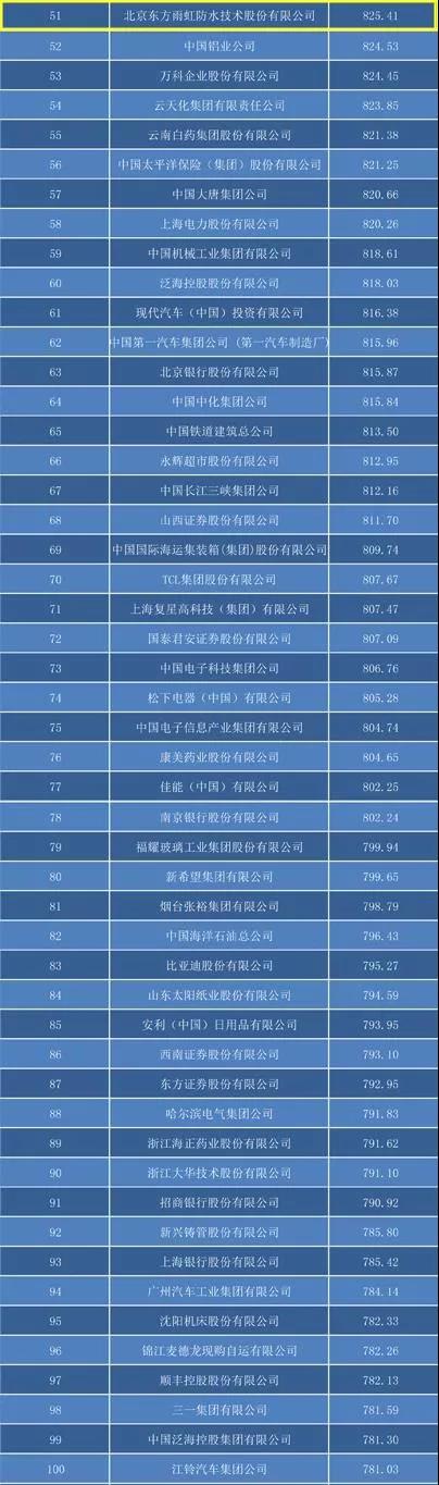 1月29日,中國企業評價協會發布“2017中國企業社會責任500優”總榜單。東方雨虹光榮入選,位列第51位。
