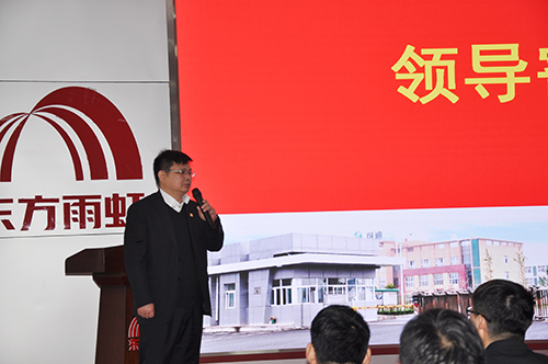 東方雨虹集團副總裁陳永初發表講話,他希望全體員工在牢記安全的前提下,按章作業,全面完成領導安排的各項任務,助力公司再創新高。