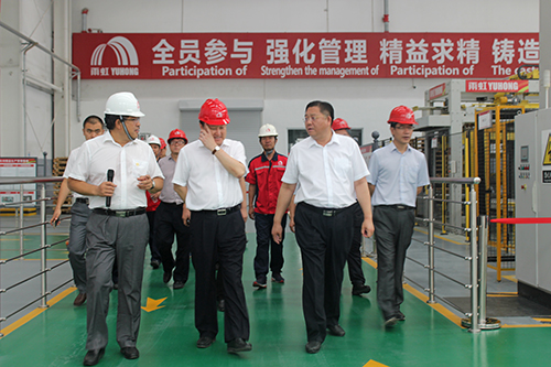 7月28日下午,為了了解唐山市重點企業的發展規劃及督導重大項目建設和轉型升級工作,唐山市副市長梁振江帶領市工信局、國土局、環保局等相關負責人到唐山東方雨虹參觀指導工作。