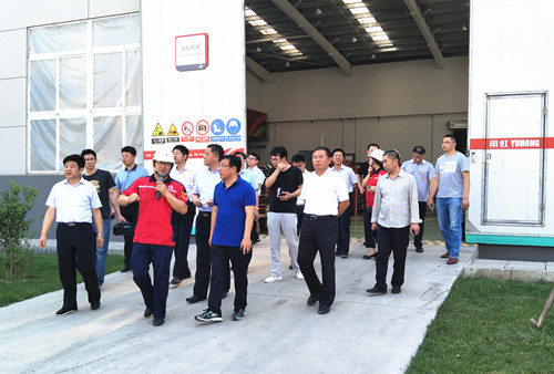 6月15日下午,唐山市副市長孫文仲一行20余人參觀東方雨虹唐山生產基地,就工業經濟發展及重點建設項目進度進行深入交流。 唐山生產基地廠長馬到原詳細介紹了基地的生產及建設情況,并帶領參觀組參觀了基地安裝的國際先進生產設備。