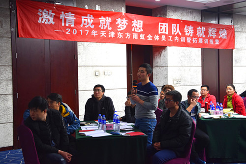 業務系統課程培訓在最后一日進行,由外聘講師從銷售心態、銷售流程、銷售技巧三方面系統地講授了銷售技巧課程,為業務人員在2017年的業務工作注入了強心劑。整個集訓期間,培訓課程安排緊湊,利用晚餐后時間,天津東方雨虹副總經理周振生為大家帶來《管理與營銷》課程的精彩分享,大家受益匪淺。 通過本次集訓,使全體員工在體能與意志方面得到充分鍛煉,提升了整個團隊的協作意識,同時增強了業務系統的營銷實戰經驗。厲兵秣馬,枕戈待旦,天津東方雨虹將在2017年擁抱機遇,鏖戰本土,乘勝前進。