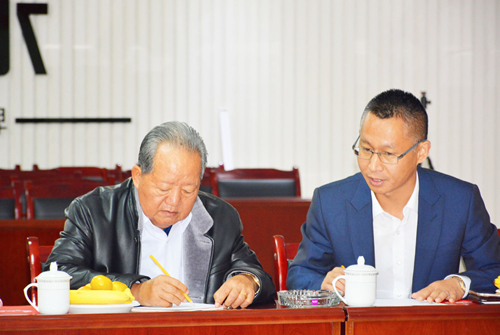 老撾原中央政治局常委、副總理阿桑·勞里(左)、風行防水總經(jīng)理呂學強(右)