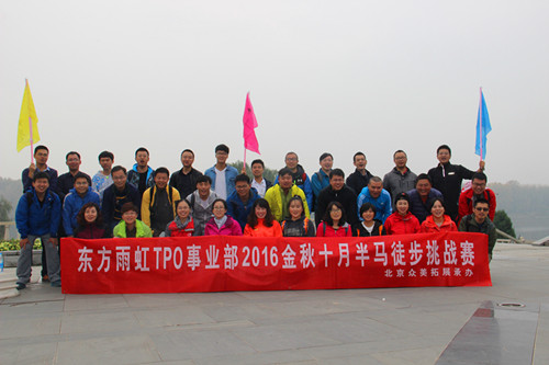10月15日,金秋十月,碩果累累,東方雨虹TPO事業部舉辦了2016年十月半馬徒步挑戰賽,來自銷售、技術、職能的33名同事參加了此次活動。