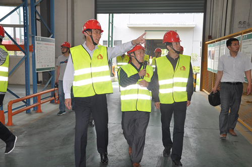 6月1日下午,徐州市委宣傳部副部長、徐州報業傳媒集團黨委書記、徐州日報社社長劉明參觀東方雨虹徐州生產基地。新沂市市委書記趙立群,市委常委、宣傳部長田志耕陪同參觀。   參觀組一行先后參觀了基地節能保溫材料生產線、智能化的水性涂料、聚氨酯、卷材生產線,詳細聽取了公司在產品創新、兩化融合、標準化作業和工業旅游規劃等方面的工作。新沂市委書記趙立群也向劉明部長介紹了東方雨虹在項目建設中推廣進口設備智能化技術的情況,介紹了東方雨虹落戶新沂以來快速發展取得的成就。