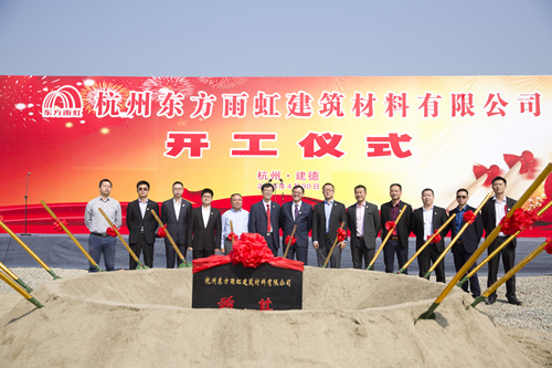2016年4月30日9點18分,伴隨著絢麗的彩煙騰空而起,東方雨虹建德生產研發基地開工儀式在杭州建德市隆重舉行。建德市委書記戴建平、市長童定干、市人大主任程茂紅、市政協主席吳鐵民等市領導,建德高新園管委會領導及市級相關部門領導,東方雨虹董事長李衛國,建設開發中心總監吳士慧,工渠華東片區總經理馬秉珠及部分員工等近百人出席了開工儀式。