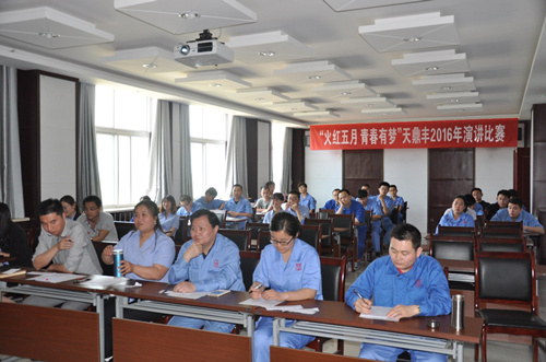 為了加強企業文化建設,豐富職工的文化生活,2016年5月4日,天鼎豐公司舉行了一場以 “青春 夢想”為主題的演講比賽初賽,來自各部門、車間的29名員工參加了比賽。天鼎豐董事長聶松林為每位參賽選手的演講做了點評。   比賽中,29名參賽選手把“企業夢”融入“個人夢”,結合自己的工作與生活及身邊的感人事例,以激情昂揚的歌頌,情深意切的講述,鏗鏘有力的語言,表達了為夢想奮斗的決心,抒發了建功青春的勇氣和愛企榮企的熾熱情懷,充分展示了公司青年員工飽滿的精神面貌和昂揚向上的工作激情。《我的青春我做主》、《我拿青春換夢想》、《“改變”讓夢想插上翅膀》等演講,更是感情豐富,思考深入,贏得臺下觀眾熱烈的掌聲。