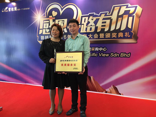 2016年3月10日,碧桂園2016年供應(yīng)商大會(huì)在馬來(lái)西亞碧桂園森林城市召開(kāi),此次大會(huì)主要評(píng)估2015年碧桂園供應(yīng)商服務(wù)質(zhì)量。據(jù)悉,碧桂園集團(tuán)的供應(yīng)商多達(dá)15900余家,本次表彰的是其中優(yōu)秀的60余家。東方雨虹憑借優(yōu)質(zhì)的產(chǎn)品和出色的服務(wù)脫穎而出,榮獲2015年度碧桂園優(yōu)質(zhì)服務(wù)獎(jiǎng)。
