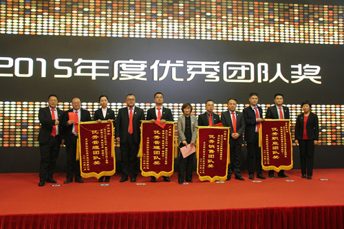 東方雨虹防水集團(tuán)副總裁、工程渠道事業(yè)部董事長(zhǎng)張志萍以《為榮譽(yù)而戰(zhàn),為親人而戰(zhàn),我們?nèi)σ愿啊窞轭},回顧了工渠事業(yè)部2015年的工作成果,部署2016年發(fā)展規(guī)劃。東方雨虹工渠華東片區(qū)總經(jīng)理馬秉珠、營(yíng)銷(xiāo)服務(wù)部總經(jīng)理王玉飛、售后服務(wù)部經(jīng)理常麗君也分別就2015年華東團(tuán)隊(duì)的成功經(jīng)驗(yàn)、2015年工渠市場(chǎng)工作方面的成功與不足、2015年售后服務(wù)等方面的工作做了經(jīng)驗(yàn)分享和匯報(bào)。 本次大會(huì)表彰了2015年表現(xiàn)突出的優(yōu)秀員工,共設(shè)立:突出貢獻(xiàn)獎(jiǎng)、優(yōu)秀新人獎(jiǎng)、優(yōu)秀員工獎(jiǎng)、優(yōu)秀管理員工、優(yōu)秀團(tuán)隊(duì)獎(jiǎng)等9項(xiàng)獎(jiǎng)項(xiàng),共計(jì)130余人及4個(gè)團(tuán)隊(duì)獲獎(jiǎng),現(xiàn)場(chǎng)為他們頒發(fā)了證書(shū)及獎(jiǎng)金。