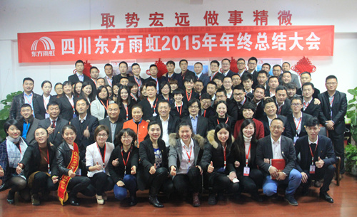 1月19日,四川東方雨虹2015年工作總結表彰大會隆重召開。東方雨虹防水集團總裁劉斌,東方雨虹品牌戰略中心總監陳志杰、人力資源中心副總監趙東亮、置業開發事業部總經理助理羅華,廣東東方雨虹保利事業部、洛迪公司相關負責人應邀出席。   四川東方雨虹總經理劉旭芬發表了主題講話,概括總結了四川東方雨虹2015年在業務拓展、團隊建設、工程質量和市場影響力提升方面所取得的成績,并客觀分析了經營中所存在的問題,重點闡述了2016年的經營目標及工作計劃。隨后,東方雨虹品牌戰略中心總監陳志杰、人力資源中心副總監趙東亮分別就品牌和團隊建設工作提出了指導性意見。