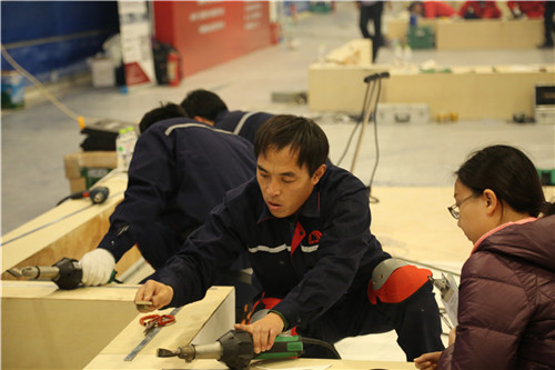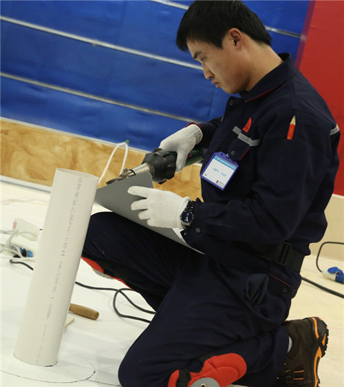 比賽現(xiàn)場,徐龍瀟進(jìn)行管根節(jié)點處理