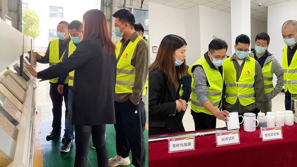 期間,江蘇溧陽建設集團有限公司高管團隊參觀考察蕪湖東方雨虹生產研發物流基地的生產現場、生產設備和產品應用等情況。