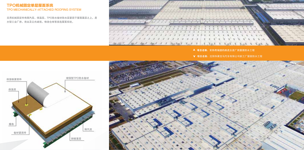此外,本次亮相的TPO屋面系統,是一款將反射隔熱高分子防水卷材外露使用的屋面系統,可降低室內溫度,減少能源消耗,降低城市熱島效應,材料耐久年限可與光伏壽命相匹配,即便達到材料使用壽命后直接進行更換,無需像傳統屋面進行拆除保護層時造成大量建筑垃圾及噪音污染。