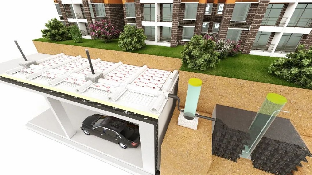 桃花源系統(tǒng)具有防水阻根、零度找坡、海綿理念等三大特點(diǎn)。不僅為建筑結(jié)構(gòu)提供持久可靠的柔性保護(hù),還能通過蓄水模塊將雨水收集再利用,滿足節(jié)水和水資源利用要求,符合綠色建筑和海綿城市建設(shè)要求。