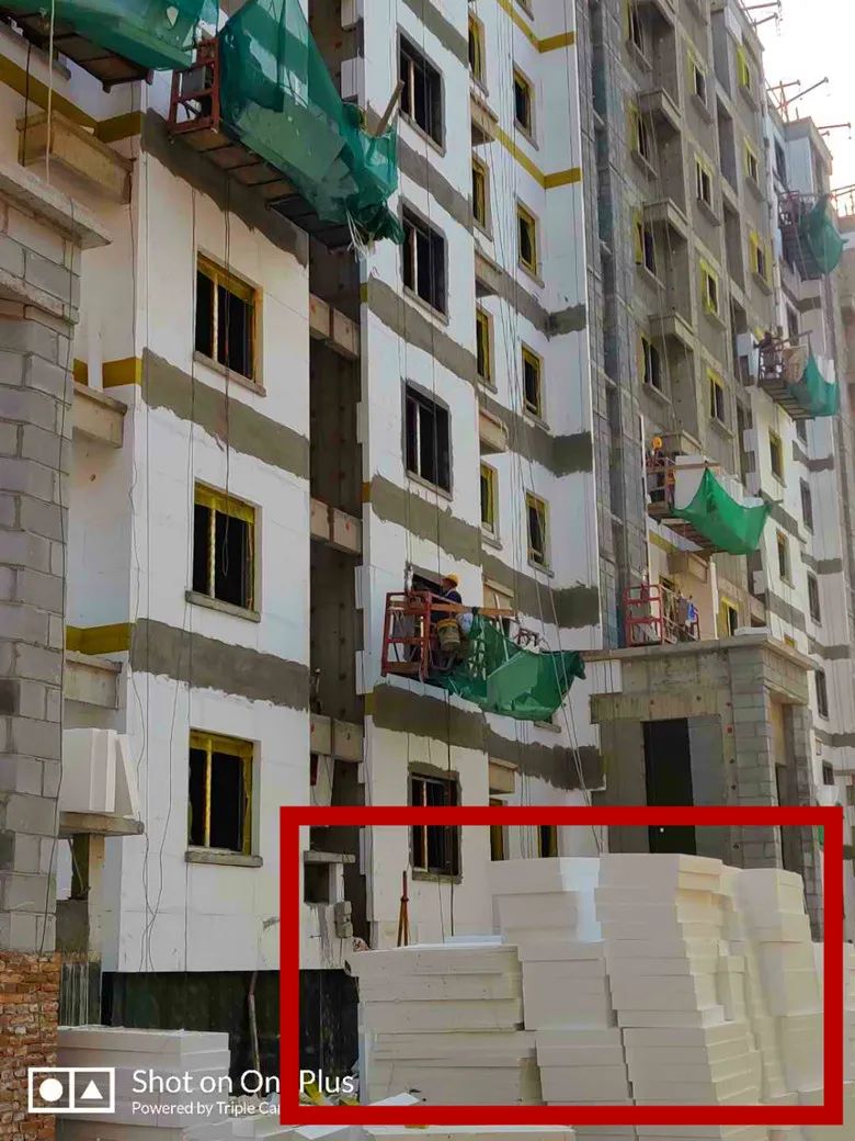 根據保溫材料的產品尺寸規格特點,以及為保障圍護傳熱系數符合標準要求,可取石墨聚苯板設計厚度為25mm。