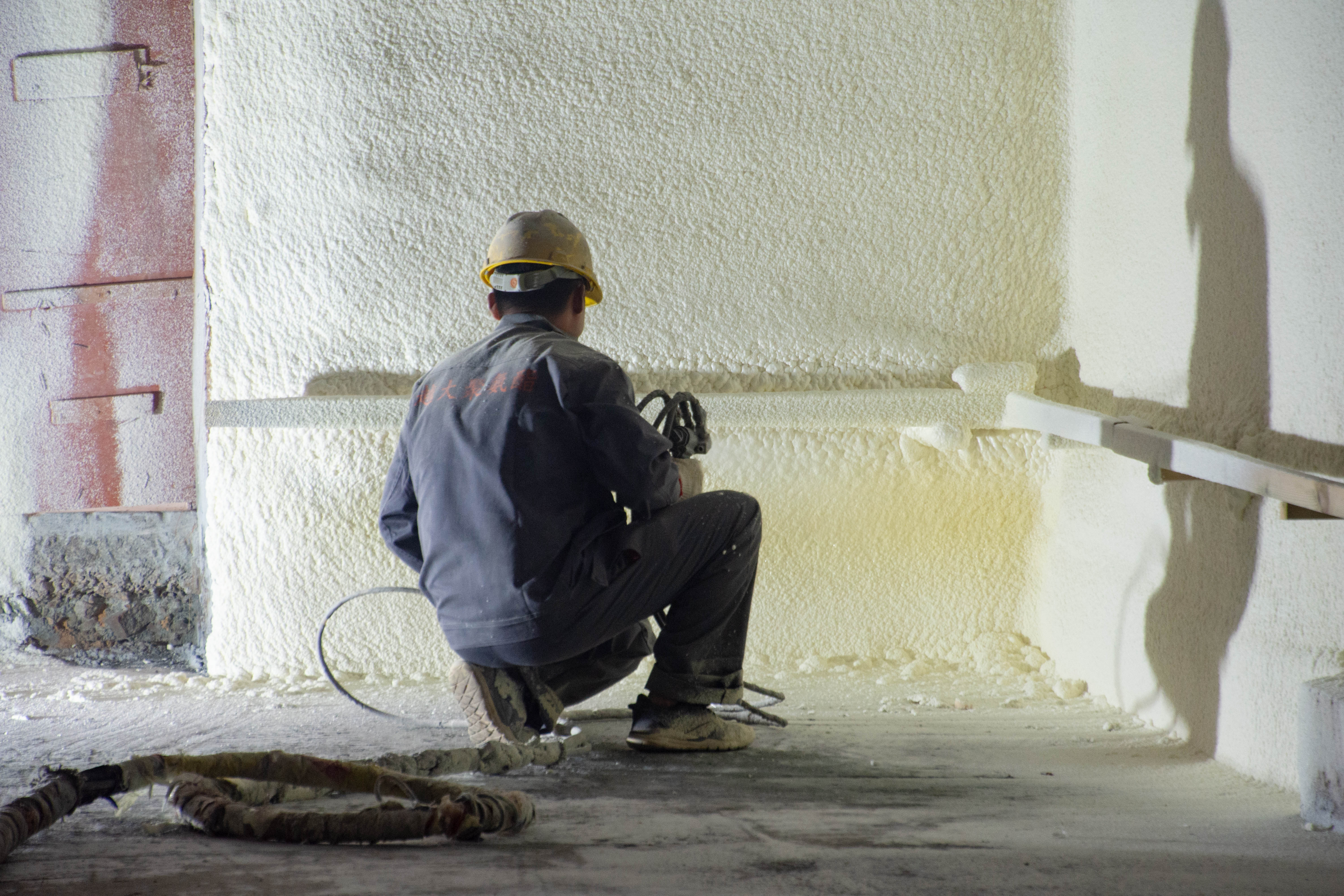 越大冷鏈倉儲(chǔ)專用聚氨酯是以國內(nèi)外優(yōu)質(zhì)異氰酸酯為黑料,配以越大自主研發(fā)組合聚醚,以及多種助劑,經(jīng)專業(yè)噴涂設(shè)備混合霧化直接噴涂在冷庫基層的保溫材料。