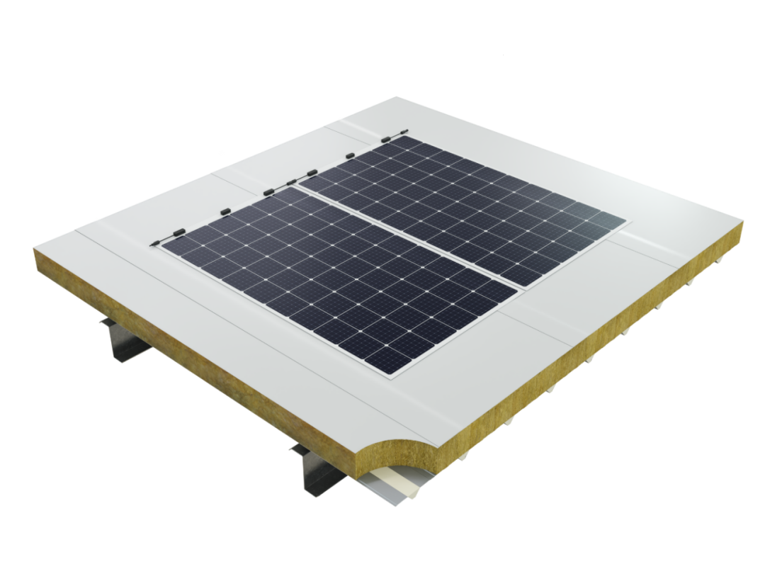 相較于普通機(jī)械固定單層屋面系統(tǒng),SWIFT輕快集成柔性屋面采用特殊工藝巖棉,容重120kg/m³的前提下即可滿足JGJ/T 316《單層防水卷材屋面工程技術(shù)規(guī)程》對(duì)巖棉保溫材料的性能指標(biāo)要求(60kPa的壓縮強(qiáng)度下,壓縮比不應(yīng)大于10%,500N的點(diǎn)荷載作用下,變形量不應(yīng)大于5mm)*。底板采用WISKIND優(yōu)質(zhì)鍍鋅鋼板,厚度0.6mm制成波高35mm,板寬100mm的壓型鋼板。降低整個(gè)屋面系統(tǒng)荷載,為屋面分布式光伏電站安裝預(yù)留更多空間*。