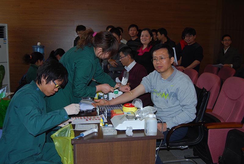 12月19日,北京的室外氣溫已接近零下10度。位于北京朝陽區高碑店的北京東方雨虹公司底樓的大會議室里卻暖意融融。2009年歲末東方雨虹義務獻血活動在此進行。此前,70余名來自公司各部門的員工報名參加本次獻血。